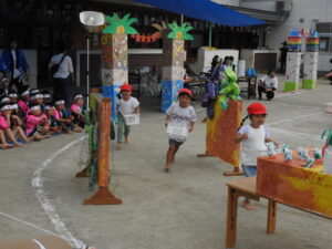 障害物競争『開南レンジャー』では遊びの中で出来るようになったことを発表しました。