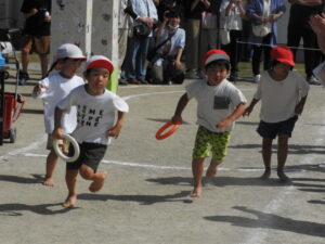 初めての運動会を経験する小さい組さんは緊張や不安もあったようでしたが最後までよく頑張りました!
