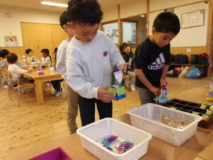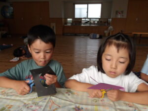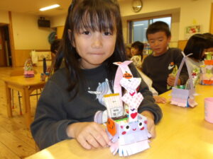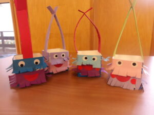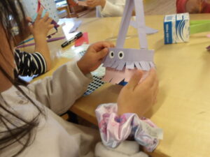 みんな真剣に切って貼って…完成したのを飾ると大喜びでした!