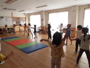 運動会の後は、年長組のよさこいをみんなで歌って踊りました🎵