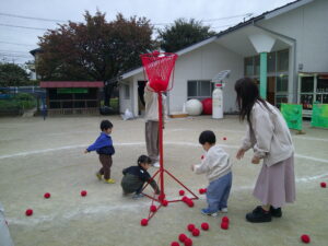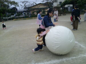 ダンスや玉入れ、大玉ころがしも親子で力を合わせて頑張りました!!