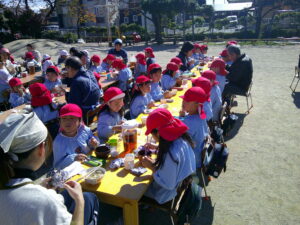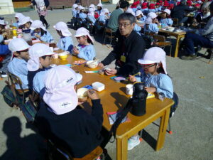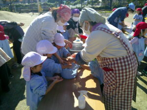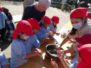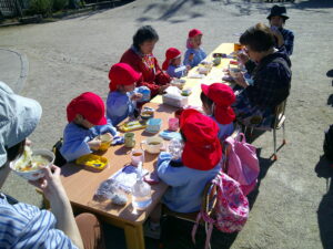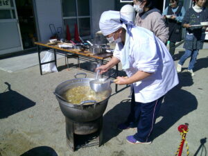 社会福祉協議会の開成支部のおじいちゃんおばあちゃんも来て頂いて、子どもたちと一緒に芋煮を作ったり、