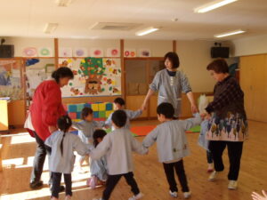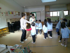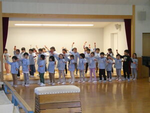 年中・年長組では、自己紹介をし、歌やダンスを発表したり、ふれあい遊びをしたり、紙飛行機作りなどをしました!