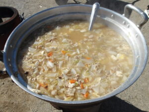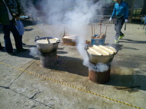 大きな竈でぐつぐつ・・・美味しくできるかな?