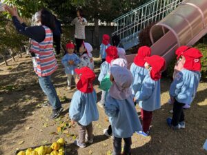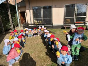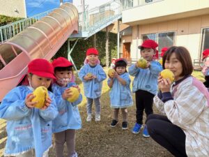 収穫にはバスの運転手の石倉さんご夫婦と、「おさるさん」もお手伝いに来てくださいました。(おさるさんが誰かはお子さんにきいてみてください☆)
