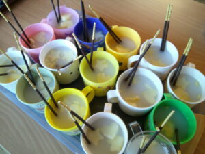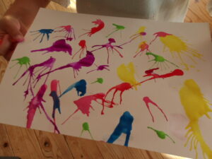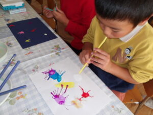 絵の具が広がっていく様子が面白くて、画用紙にいろんな色を広げていました。