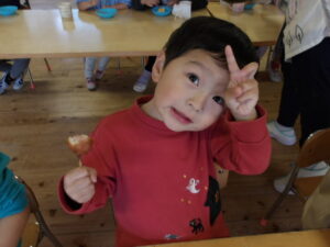 今月も給食の先生に手作りおやつを作ってもらいました。