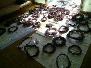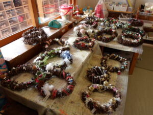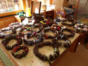 一生懸命クルクル巻いてリースの形になるまで根気強く頑張りました!