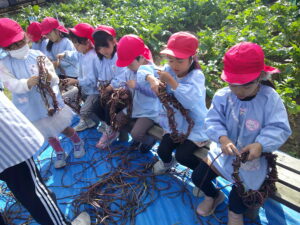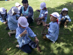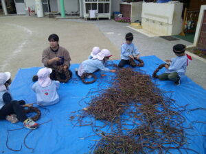 10月・・・収穫したさつまいものツルでリースを作っていました♪