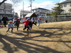 室内遊びグループは、はんかち落としや椅子取りゲームをしました。