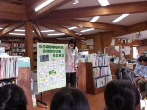 子ども達にもクローバー図書館とはどんな所なのか、丁寧に教えてもらいました。