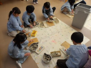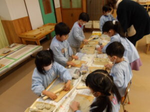 子ども達は、心の中の悪い鬼をやっつけようと、今日のために鬼のお面を作っていました。
