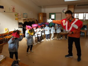 お面はお家に持ち帰りましたので、家庭でも鬼に変身して豆まきが出来たらと思います。
