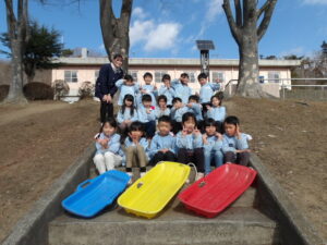 雪が降ったらそり滑りをして遊ぶ予定でしたが・・・本日は晴天でした☀