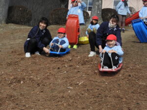 戸外での、松葉でのそり滑りや遊具遊びも楽しみました。