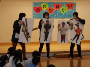 一緒にゲームを楽しんだり、歌やオリジナルのメッセージ紙芝居を発表したりしました。