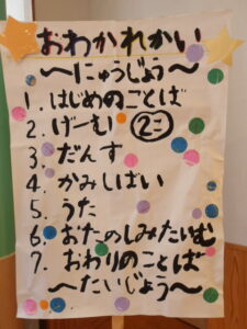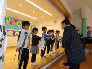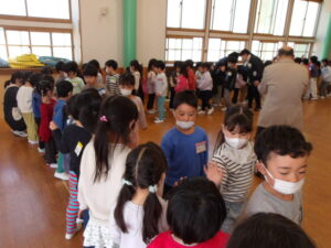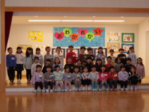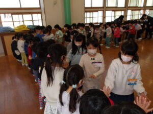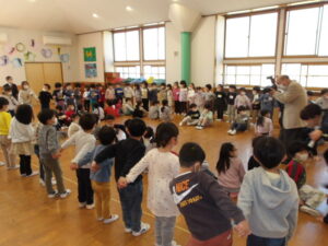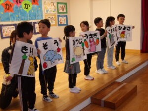もうすぐ卒園の近づいてきた年長さんのために、ひよこ・年少・年中組の皆でお別れ会を開きました。