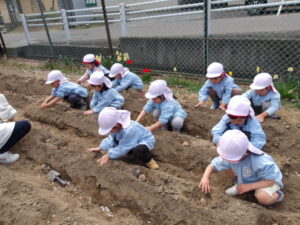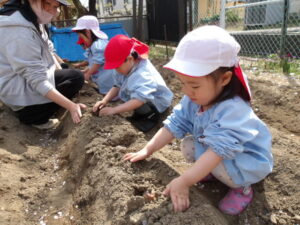 園庭の隣の畑に、じゃがいもの種芋を植えました🌱