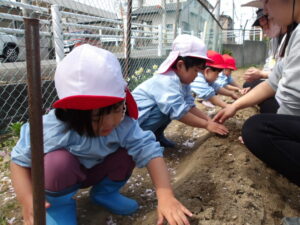 「大きくなりますように」と皆でお願いもして、上手に植えることが出来ました。